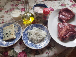 Ingredientes : Agua , sal , bolitas de pimienta negra , laurel , cebolla ,pimenton rojo dulce una guindella o al gusto y manitas de cerdo .