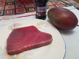 Preparacion : Los filetes de merluza los sazono y los frio un poco por ambos lados y reservo hago lo mismo con los calamares . en ese aceite sofrio la cebolla y los ajos cuando se empiecen a dorar añado el pimenton triturado remuevo un minuto a fuego medio y añado el brendy y lo dejo un poco consumir para que pierda el alcohol pasado ese tiempo le añado el tomate triturado y lo sofrio dos minutos y reservo .