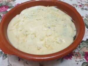 Ingredientes : Mantequilla , harina de trigo , leche entera de vaca , sal , pimienta negra molida y nuez moscada .