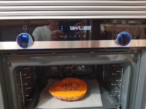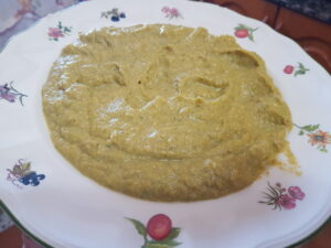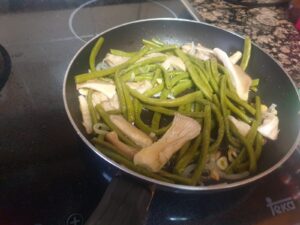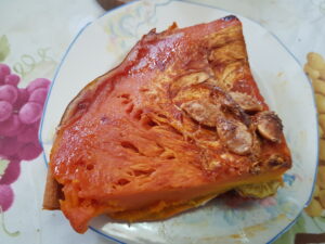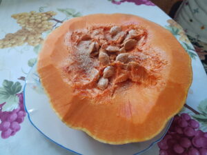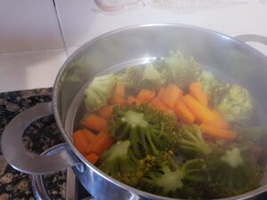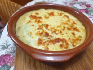 Preparacion : Poner a cocer la berenjena partida por la mitad ( yo las hago al vapor durante 15 minutos ) una vez cocidas con cuidado se bacian apartando la pulpa y se reservan .