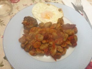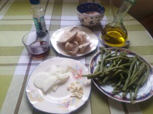 Ingredientes : Una berenjena , carne picada ( al gusto yo puse mitad de cerdo y mitad de ternera ) , perjil , 2 dientes de ajos , 1 cebolla , queso rallado , tomate natural triturado , sal , pimienta negra molida y aceite de oliva .